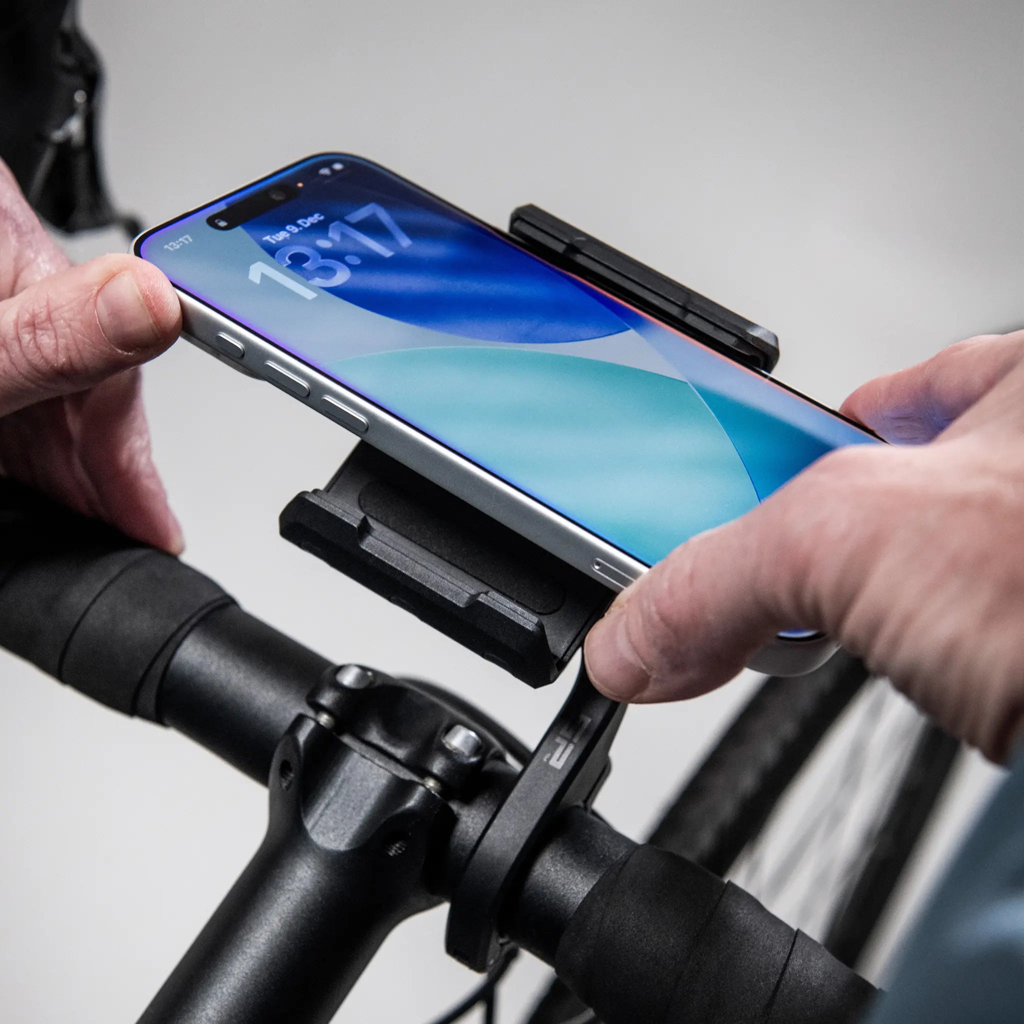 The Universal Phone Holder is a practical solution for mounting your smartphone quickly and securely. Constructed from durable, fiberglass-reinforced polyamide, it is designed to fit phones with or without a case, up to a maximum thickness of 14 mm.
